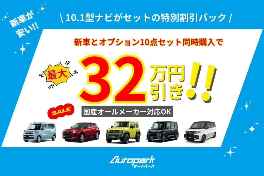 新車が安い!新車とオプション10点セット同時購入で最大32万円引き!!