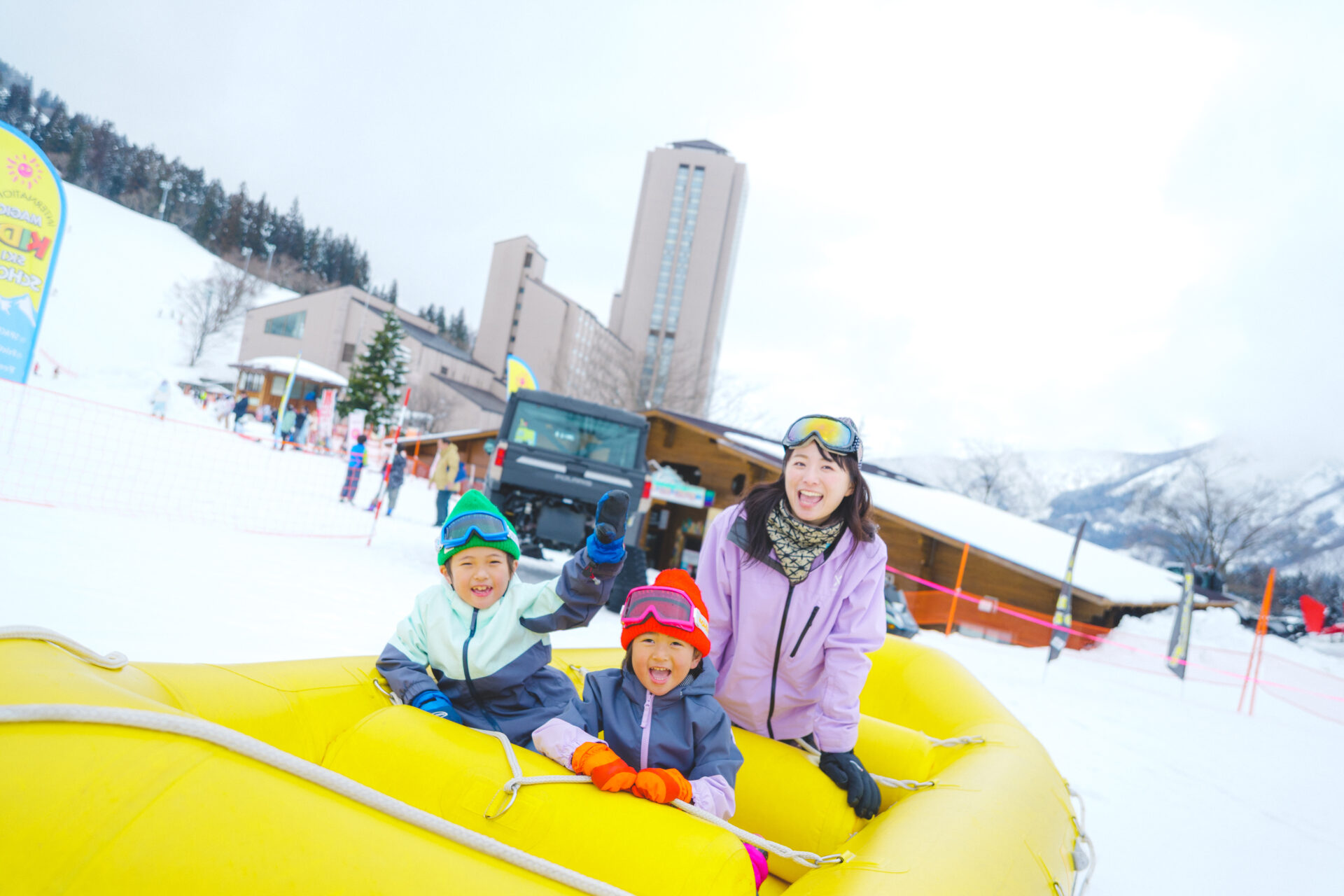 ゲレンデデビューにぴったりの初心者コースやそり・チュービングが楽しめるキッズパークなど、お子さまと一緒に遊べるアクティビティが盛りだくさん!