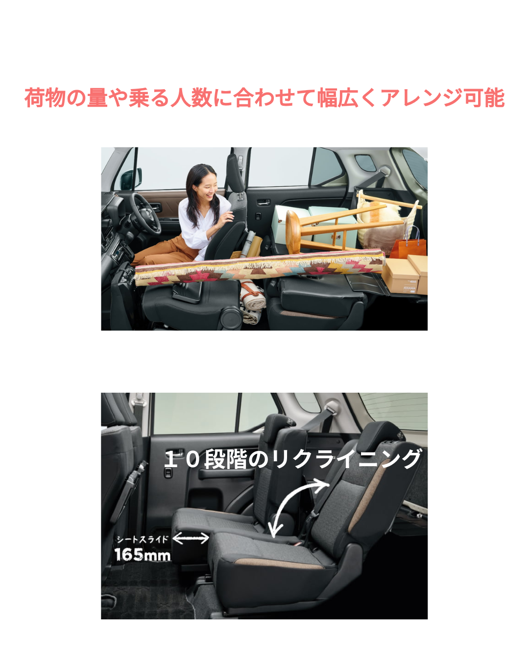 荷物の量や乗る人数に合わせて多彩なシートアレンジが可能